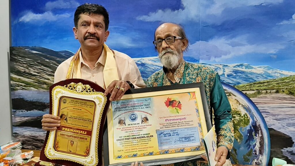 Kolkata: Nagathihalli Ramesh, a disting-uished poet, writer, social activist, and filmmaker from Karnataka, received the prestigious Kazi Nazrul Memorial International Lifetime Achievement Award, “Premanjali,” on August 3, 2025, during a grand ceremony at the Ramakrishna Mission Swami Vivekananda’s Ancestral House and Cultural Centre in Kolkata. Organized by the Jatiya Sahitya Prakashan Trust to commemorate the 125th birth anniversary of the revered rebel poet Kazi Nazrul Islam, the event celebrated Ramesh’s remarkable contributions to literature, environmentalism, social activism, and the arts.