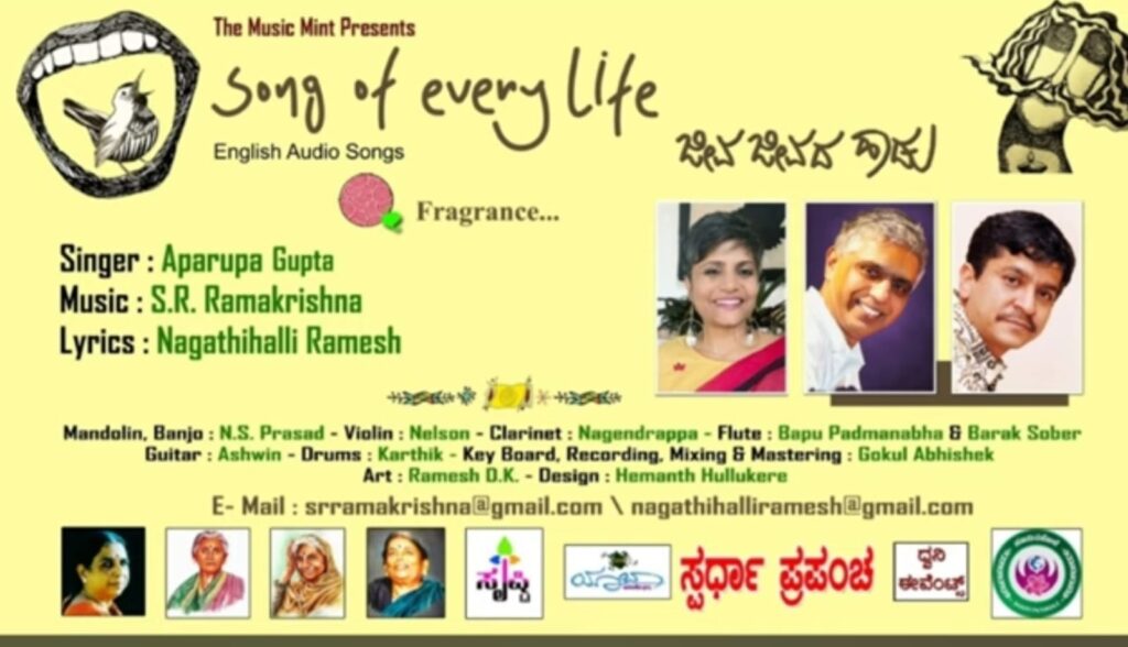 “Nagathihalli Ramesh’s beautiful and wonderful lyrics, composed by the sensitive and experimental great musician S.R. Ramakrishna, have resulted in the amazing song ‘Song of Every Life’ (In english audio album, in kannada ‘Jeeva Jeevada Haadu’ in Kannada), which is universally appreciated and admired internationally by everyone.”